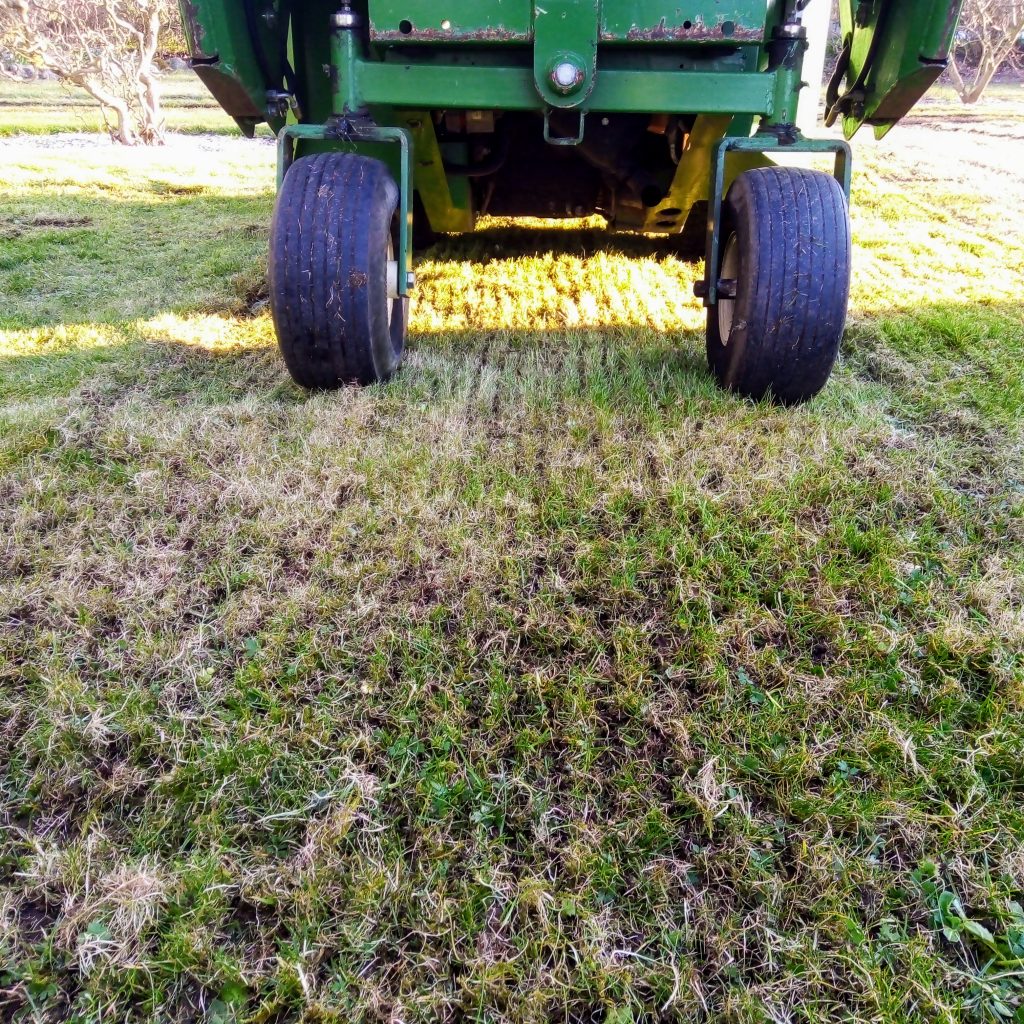 Virkningen af vertikalskæringen kan forstærkes ved at efterså og eventuelt topdresse plænen. Herved får man elimineret huller og ujævnheder i græsplænen.
